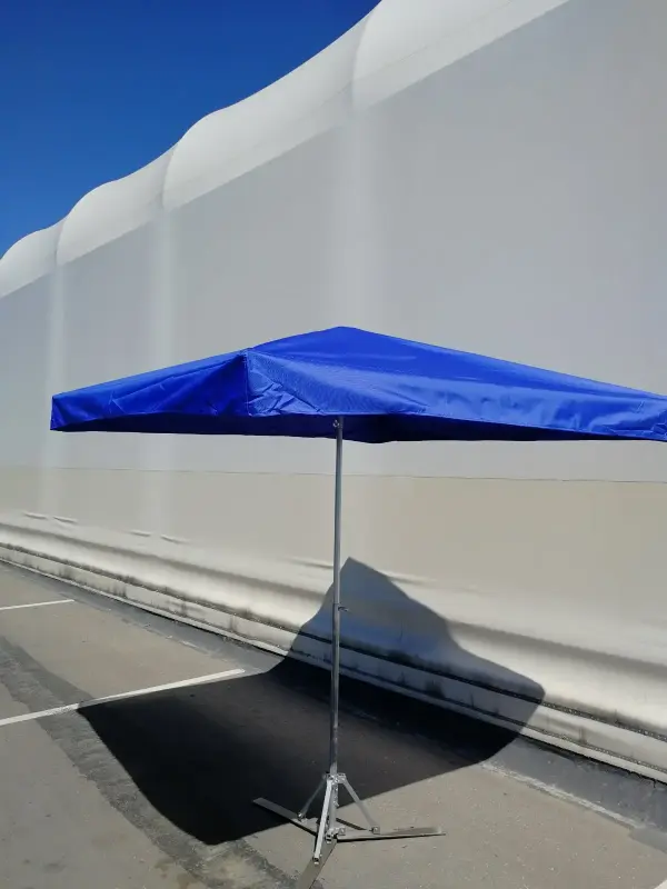 Зонт, крепкий, прочный изготовлен полностью из стальной оцинкованной трубы. Тент сделан из прочной ткани, полиэстер с водооталкивающей пропиткой, оксфорд 600D1000PU .