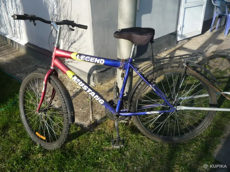 Велосипед <МУСТАНГ> на ходу в хорошем состоянии. Резина новая (26*2,25 / 57*559), касета звёздочек новая, цепь новая.