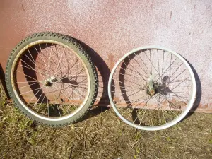 Все обода и колёса б/у, целые в нормальном состоянии. Втулки, где есть, все в рабочем состоянии. Описание и нюансы по номерам фотографий, с лева на право.