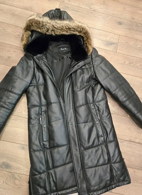 Мужской удлиненный пуховик из 100% натуральный кожи