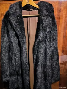 Шубы женские (разные): 2 - шуба натуральная из горного козлика, размер 48-50, фасон прямой, цвет черный, длина на вешалке (по спинке) 140 см, длина рукава по...
