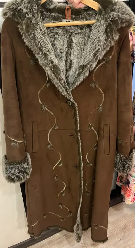Дубленка в идеальном состоянии. Искусственная, длинная, с красивым мехом. Размер 48.
