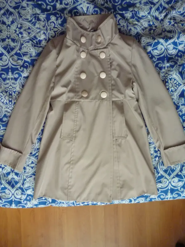 Плащ б/у, в хорошем состоянии, есть нюанс. На плаще есть два практически не заметных маленьких пятнышка (фото №8,9), надо близко и сильно присмотреться, что бы их увидеть, из-за этого выводить пятна не пытались. Размер 44.