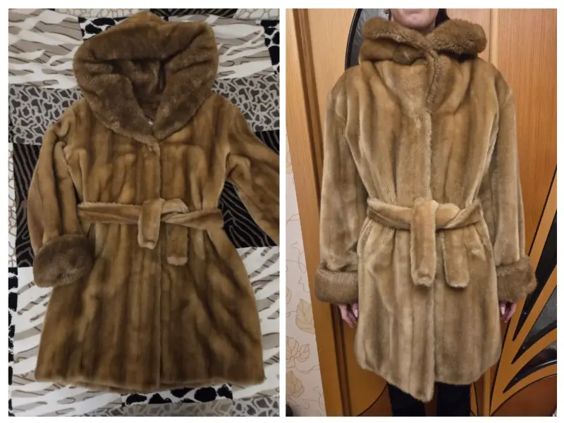 Полушубок женский под норку р. 170-84,88, замеры на фото, тёплый, удобная длина, капюшон, 2 кармана.