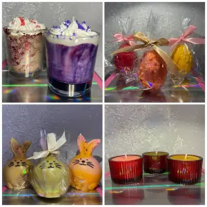 На фото представлены примеры возможных вариантов готовых изделий. Также скоро будут доступны ещё 2 формы свечей 💓
