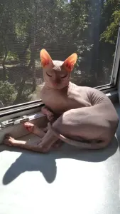 Великолепный Канадский Бамбини--- молодой,развязан,( годик ) клубный котик с метрикой , вет . паспортом настойчиво зовёт к себе на пару дней даму для вязки .