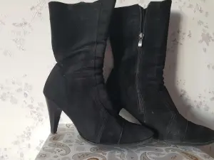 в хорошем состоянии полусапожки, натуральный замш, весна, размер 40, каблук 8 см, высота полусапожек 35 см. Почта, евпочта