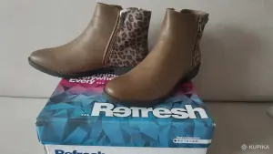 Размер 24.5 (на 38.5 росскийский), длина стельки 24.8см, на платформе высотой 1.5см. Из искусственной кожи на искусственном меху. Цвет серый, сбоку волнистый...