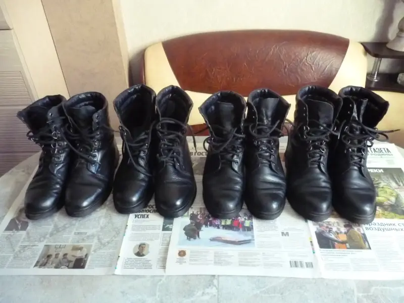 Все берцы б/у, но в хорошем и крепком состоянии. Берцы кожаные, облегчённые, итальянский дизайн и подошва (фото №8). Каблуки не сбиты (фото №2-4), подошва целая трещин нет (фото №5-7). Размеры: 1-е (левые) – 37 (фото №6), а остальные – 38 (фото №6-7).
