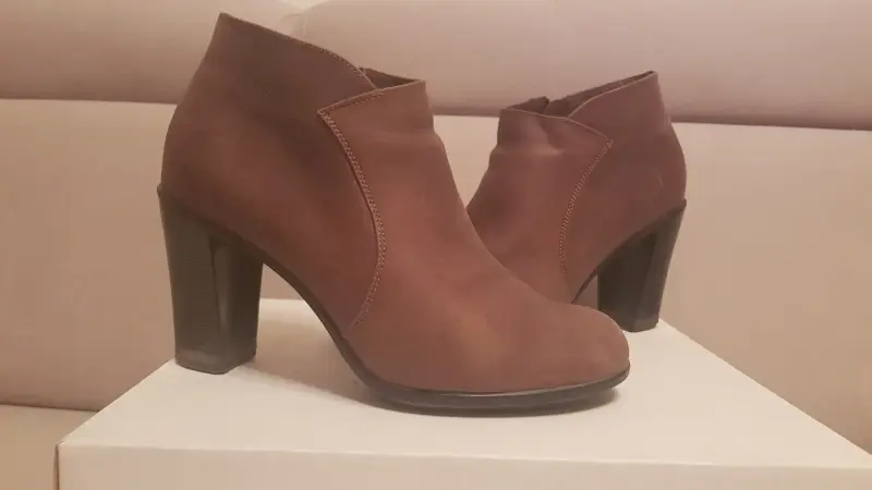 Ботильоны коричневого цвета, натуральная кожа, 40 размер, стелька 25,5, на широкую ногу (6 полнота),подкладка-трикотажное полотно,высота каблука 8см,внизу на каблуке есть отделочная полоска. Почта, европочта.