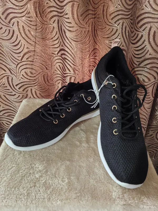 Кроссовки женские (Новые) текстильные черные,фирма Crivit(спортивный Германский бренд) мягкие легкие и очень удобные. Размер есть 40 и 41. 40 размер по стельке 25см, 41 размер по стельке 26см. Фурнитура золотистого цвета.Подошва белая.