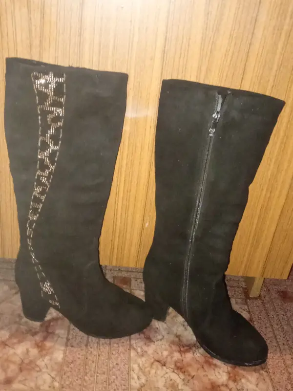 Сапоги б/у,в отличном состоянии. Удобный,устойчивый каблук. По стельке 24 см. Высота до колена.натуральный замш.