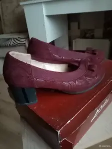 Продам туфельки б/у, р-р 37, приз-во Марко, отличные, удобные, низкий каблук, без деффектов, одеты несколько раз, натуральная замша, цена 19 рублей.
