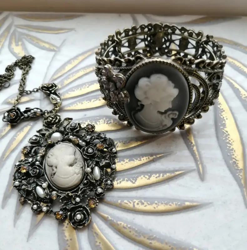Комплект в стиле винтаж браслет + колье + брошь 237671